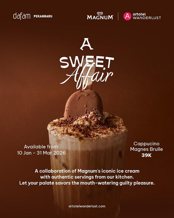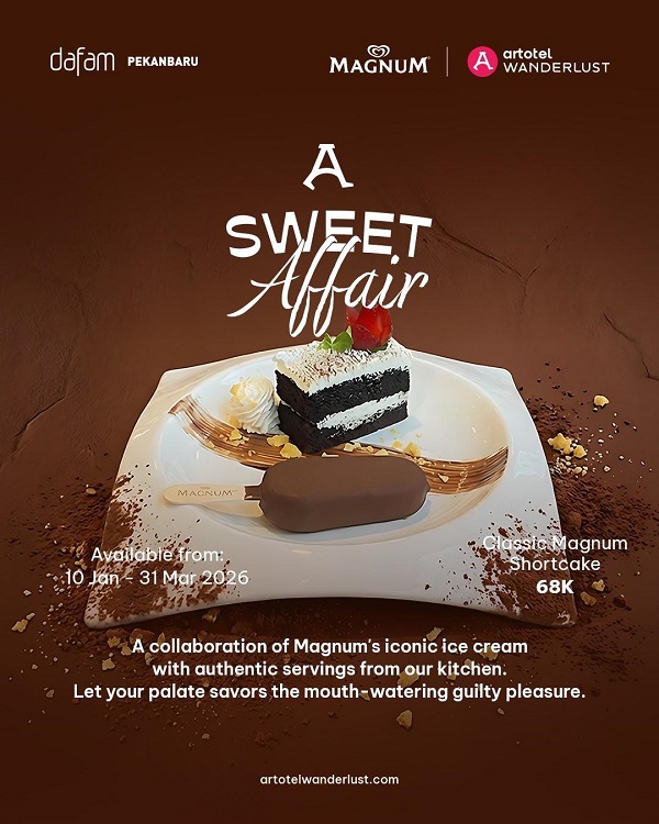 Bertajuk “A Sweet Affair”, kampanye ini akan dilaksanakan pada kuartal pertama 2026 dan dijalankan secara serentak di seluruh properti ARTOTEL di Indonesia. Dalam kampanye ini, ARTOTEL Dine menghadirkan menu dessert dan cocktail yang sama di setiap hotel, sehingga tamu dapat menikmati pengalaman yang seragam di berbagai lokasi.