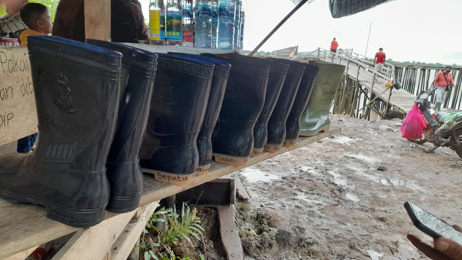 "Sepatu ini saya sediakan untuk warga yang ingin melintasi akses jalan yang kini berlumpur. Setelah dipergunakan, maka akan dikembalikan lagi ke tempat semula. Tidak dipungut biaya, gratis," kata Mulyono, Jumat (1/12/2023).
