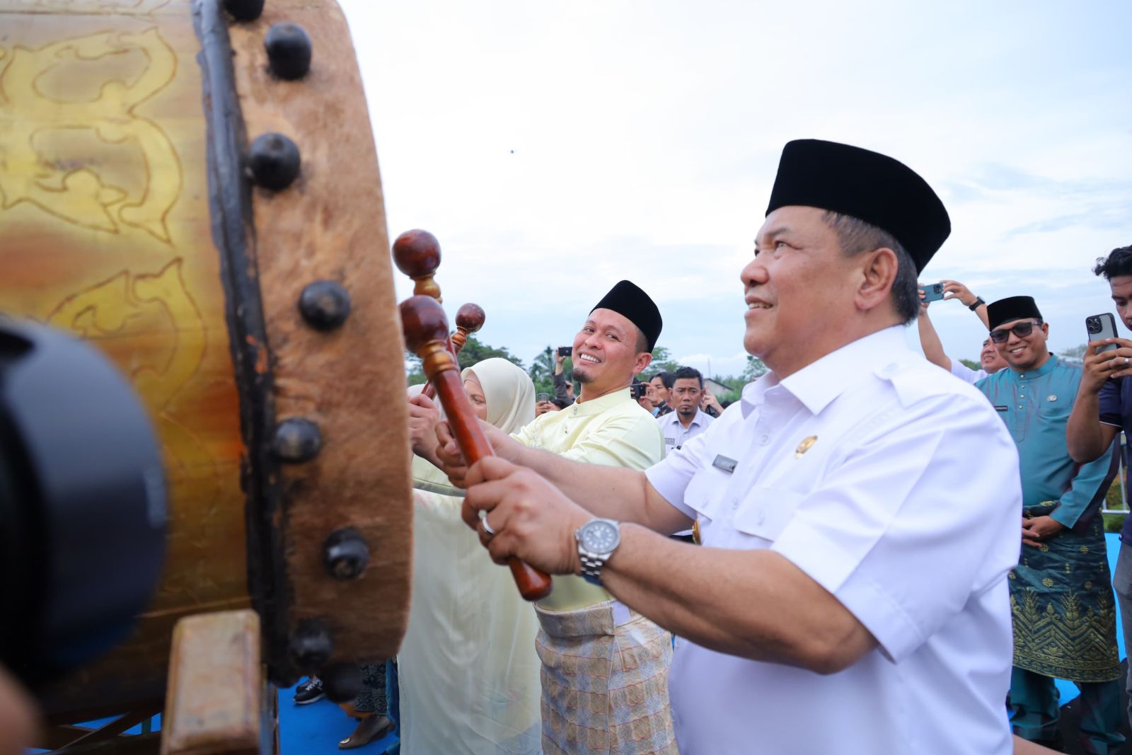 Dipusatkan di halaman Rumah Singgah Tuan Kadi, kegiatan Petang Megang tampak dihadiri Plt Gubernur Riau SF Hariyanto dan Walikota Pekanbaru Agung Nugroho.