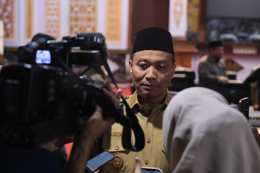 Wakil Walikota Pekanbaru Markarius Anwar, memberikan penjelasan usai paripurna mengikuti rapat paripurna di gedung DPRD setempat, Senin (13/4/2026).